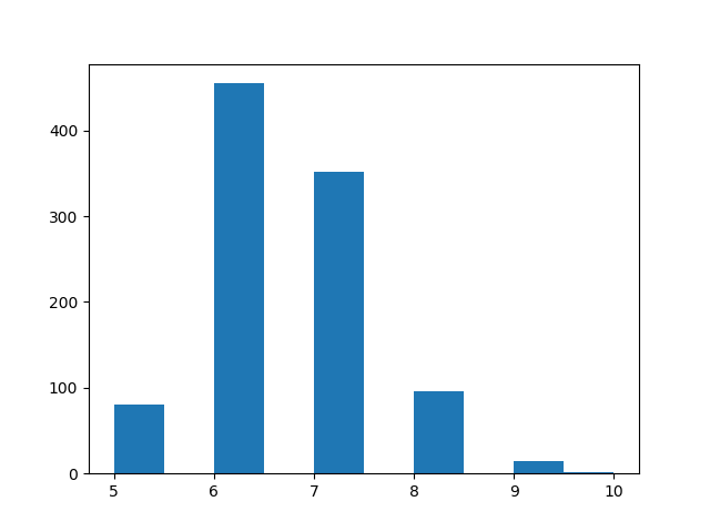 Here's a histogram of the number of the most common property in 1000 simulated Set fields.